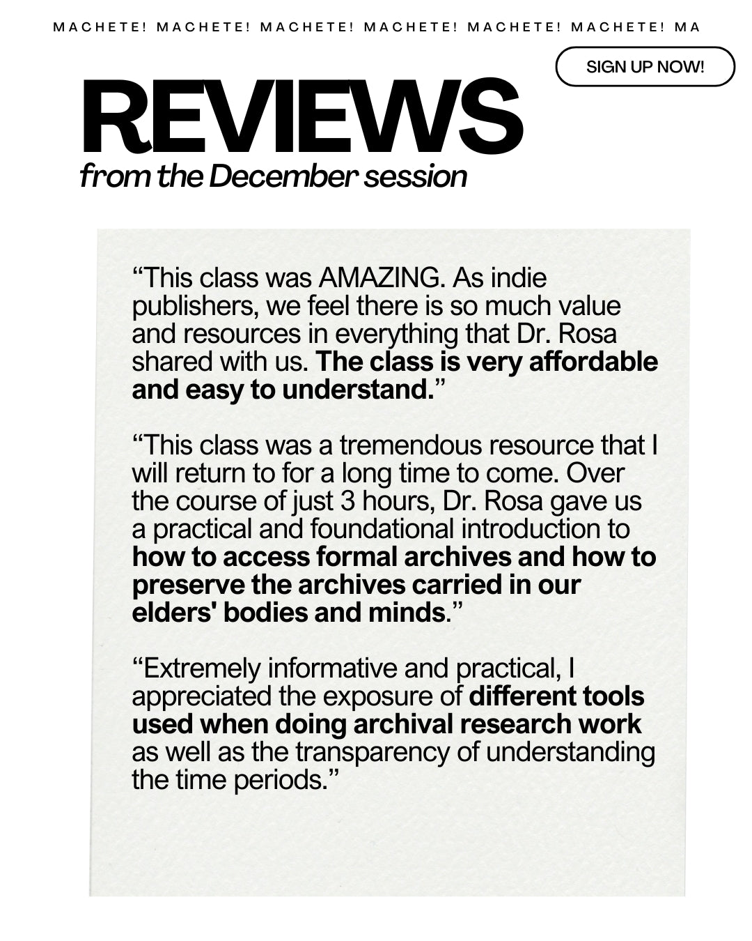 Led by Dr. Margarita Lila Rosa, this 3-hour course will be offer the preliminary tools to go into more historical topics. Online tools we will review will provide access to research in English, Spanish, Arabic, Portuguese, and more!